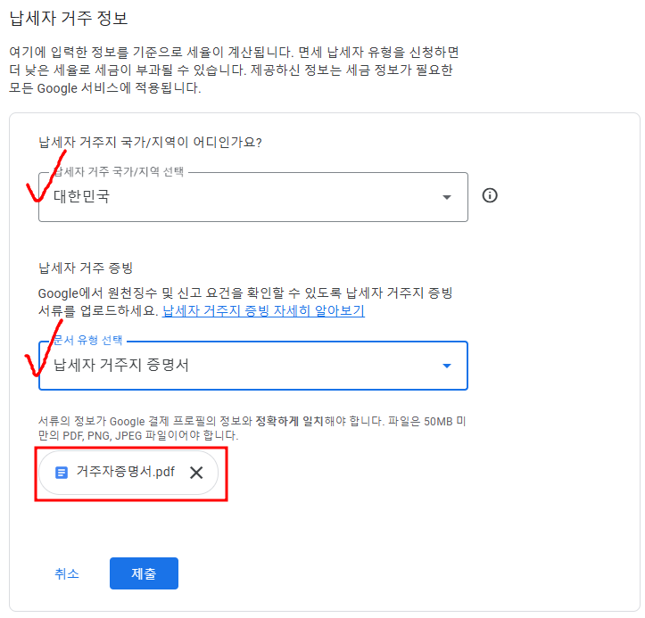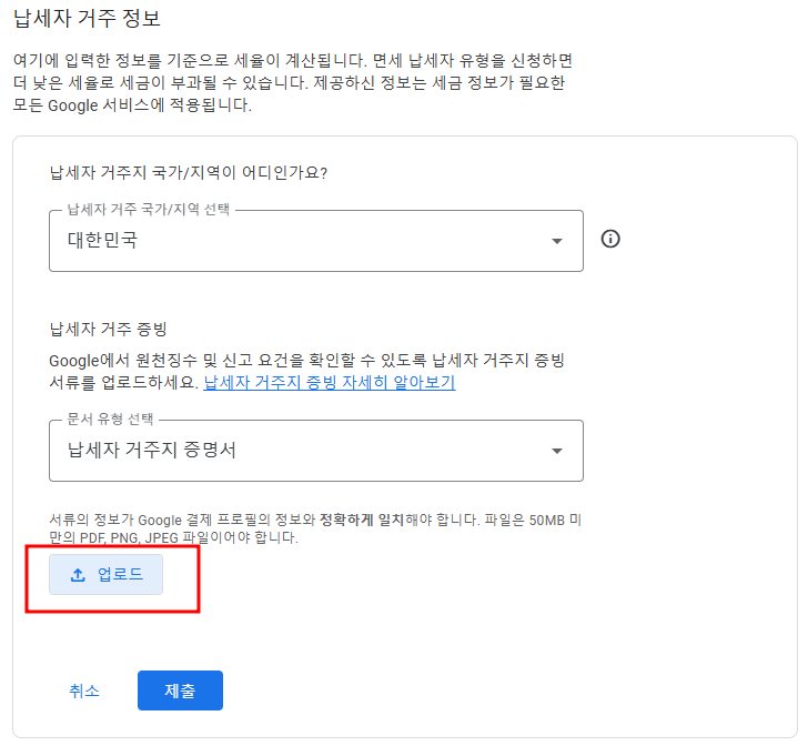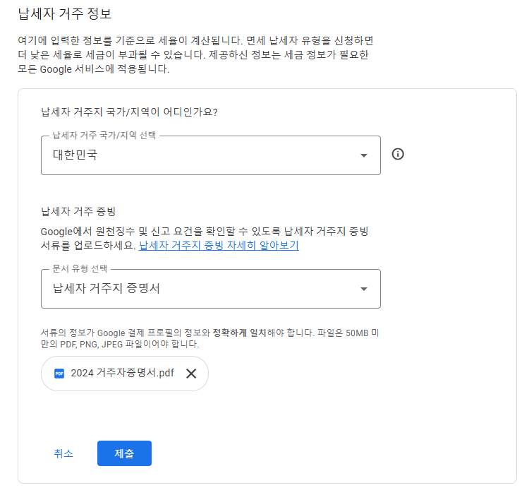 구글 애드센스 거주자증명서 제출방법