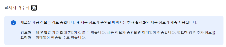 🔸 4단계 : 업로드 후 최대 7일이 걸릴 수 있다고 합니다. 세금정보가 승인되면 승인되었다는 내용의 이메일이, 추가 정보가 필요하다면 그에 해당하는 이메일이 전송되므로 이메일 확인 꼭 해주세요.