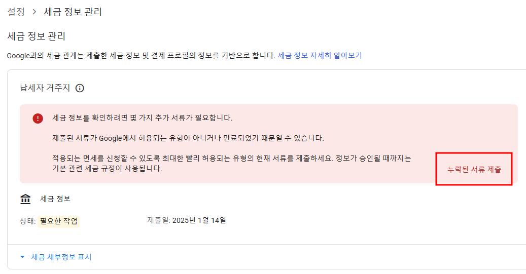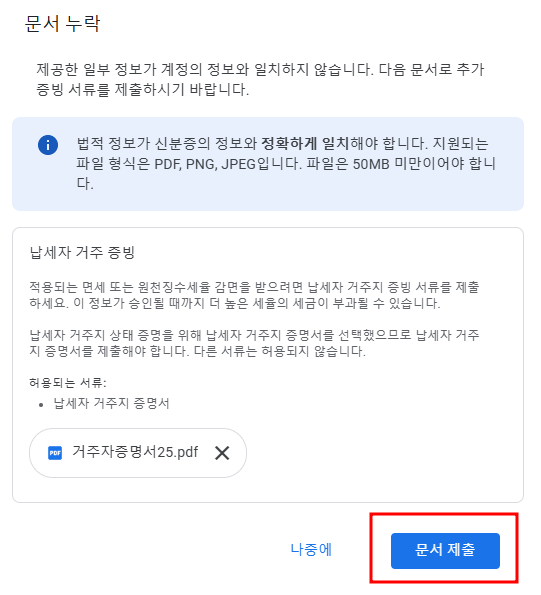 구글 애드센스 거주자증명서 다시 제출
