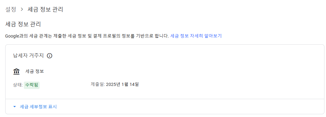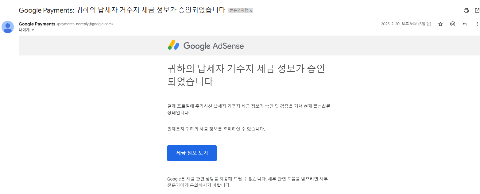 🚩 2025년 1월 14일 서류 추가제출 후 2월 20일 승인되었다는 메일을 받았습니다. 이로써 2025년 납세자 거주지 세금 정보 업데이트를 완료했습니다.
